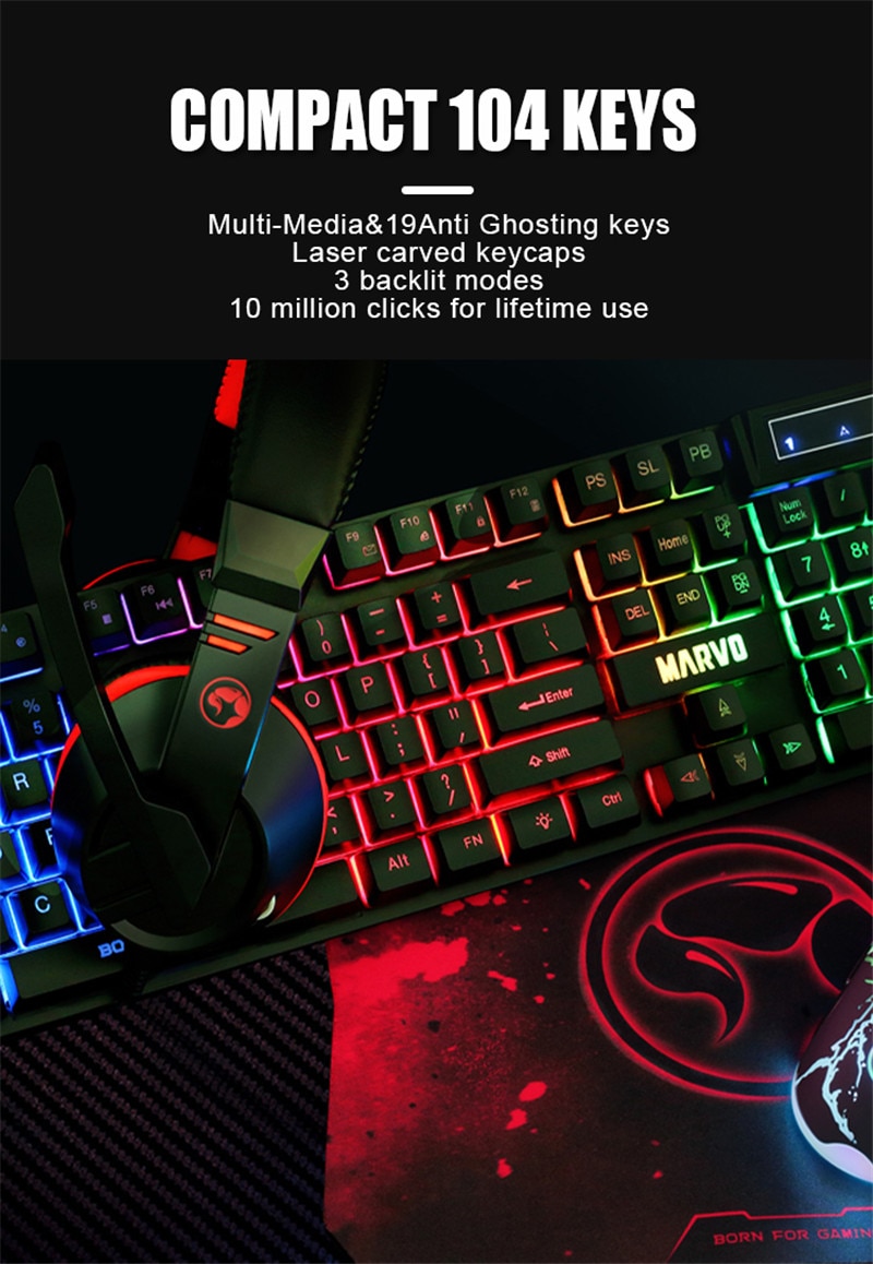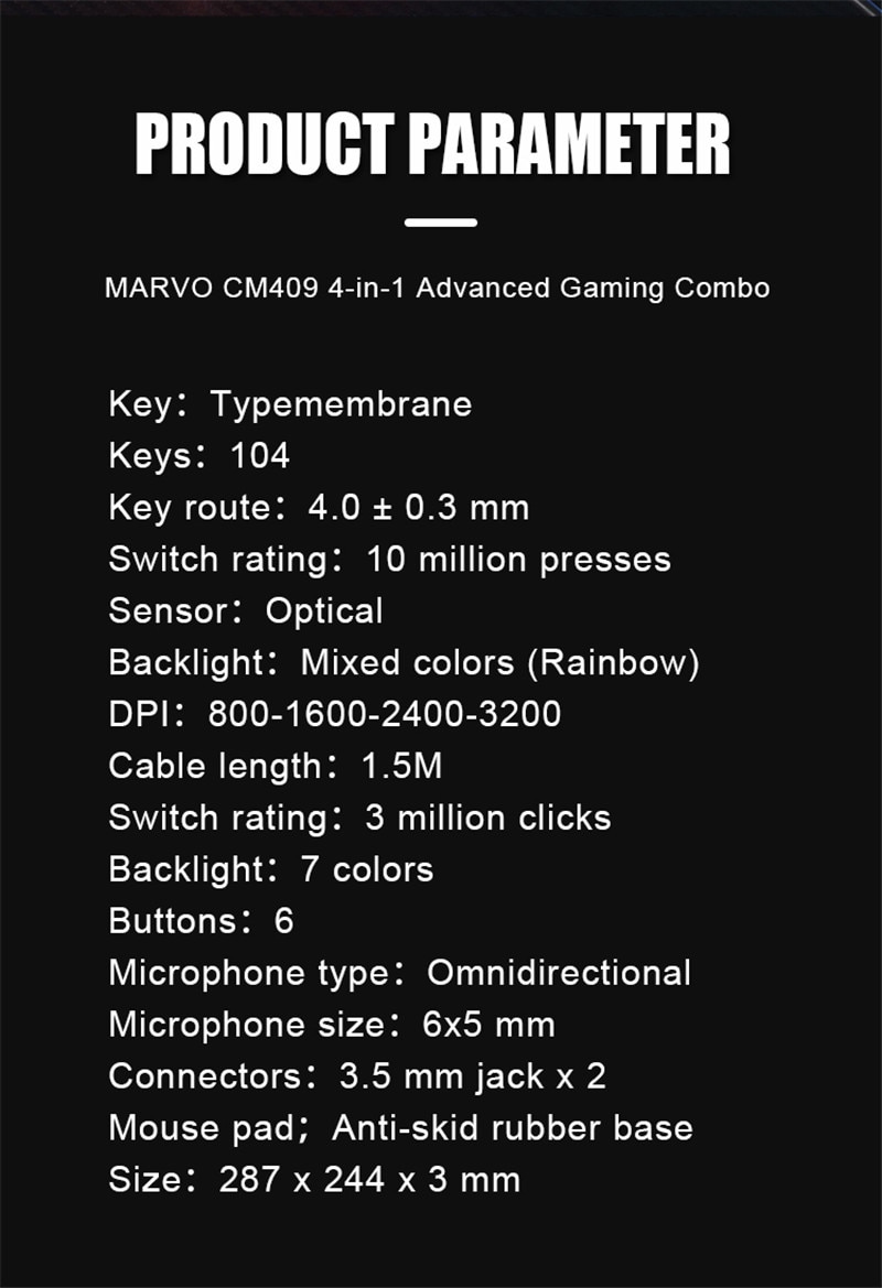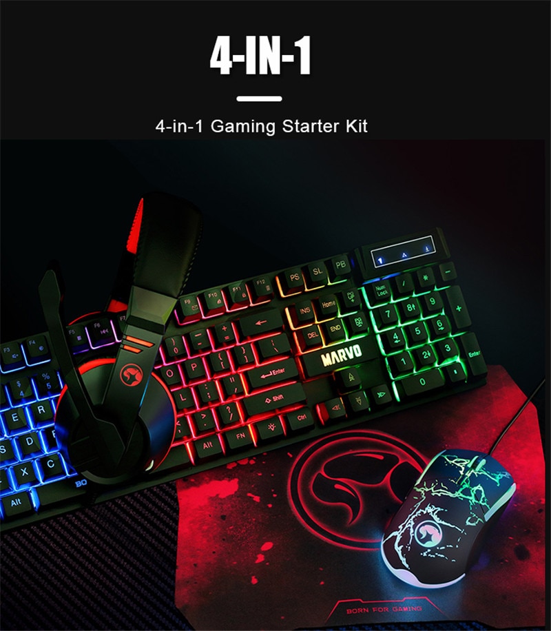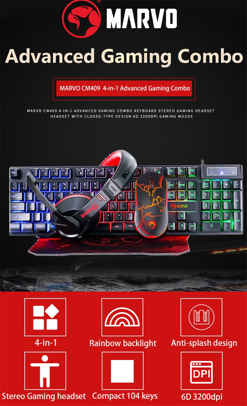 סט גיימינג מקלדת, עכבר, אזניות ומשטח MARVO CM409 4-in-1.