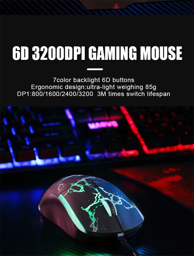 ערכה לגיימרים מקצועיים – אוזניות סטריאו ועכבר עם DPI 3200 6D.